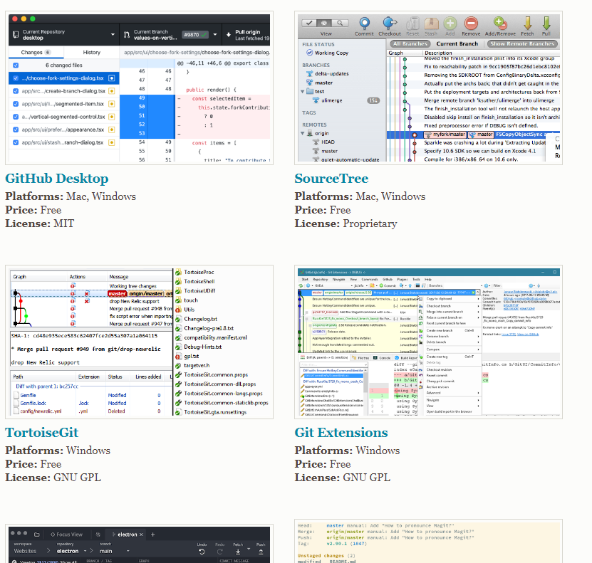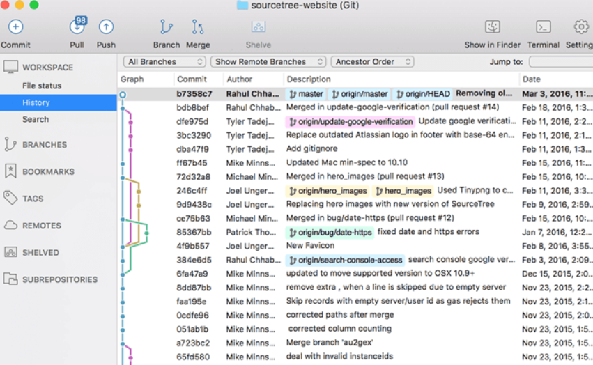 A Git GUI that offers a visual representation of your repositories. Sourcetree is a free Git client for Windows and Mac.