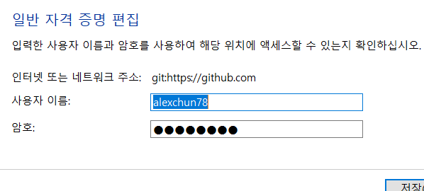 github.com 자격 증명이 있으면 수정해주면 되고, 없다면 추가해주면 된다.