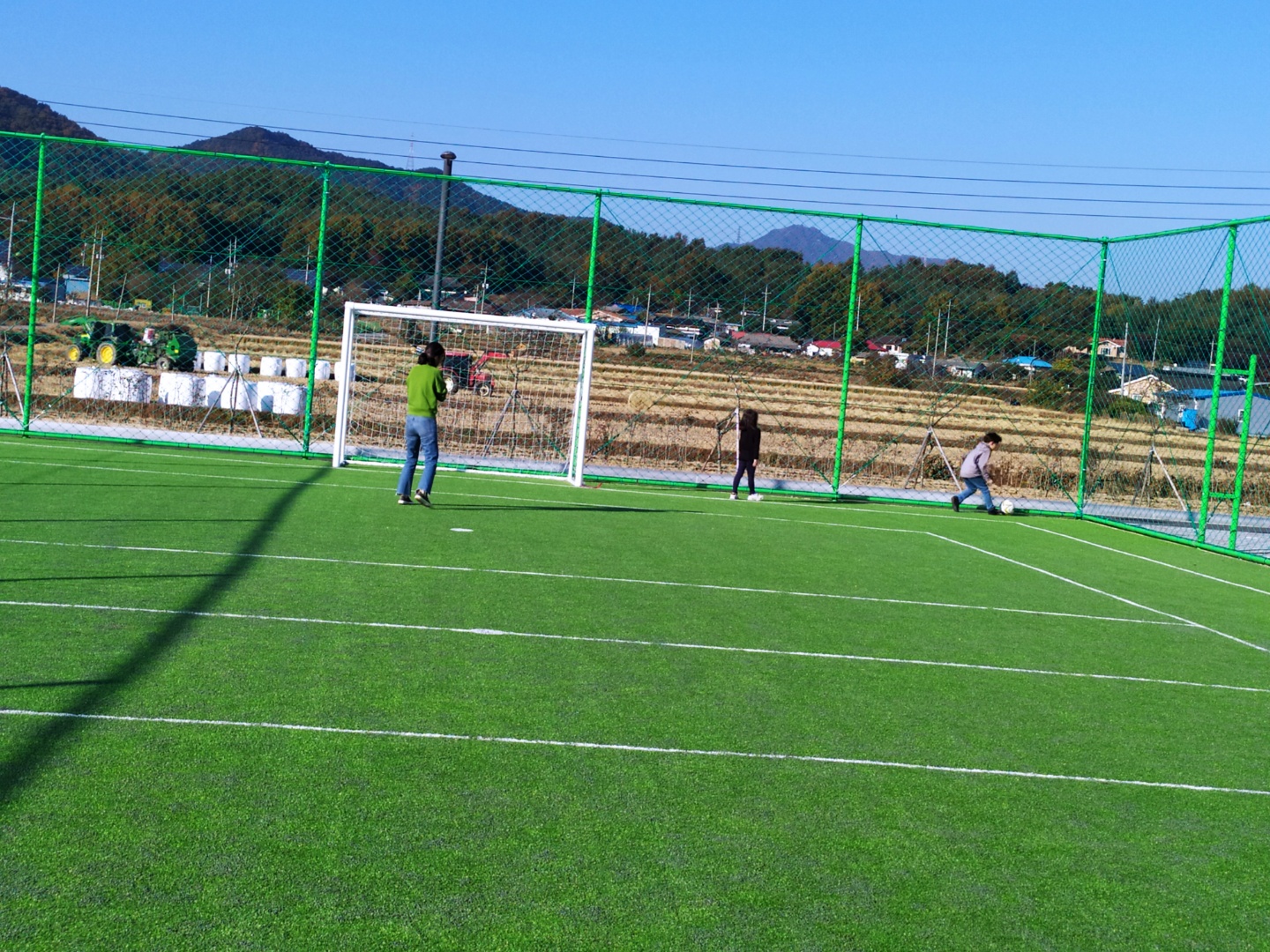 내포긴들 마을 체험관이 바로 앞에 있고, 그 옆에 있는 축구장을 맘껏 사용할 수 있다.