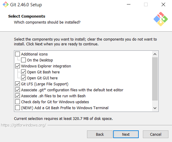 - 설치 과정에서 반드시 git-bash 설치할 것! (이유는 git-bash를 통한 개발 환경의 통일화를 위해)