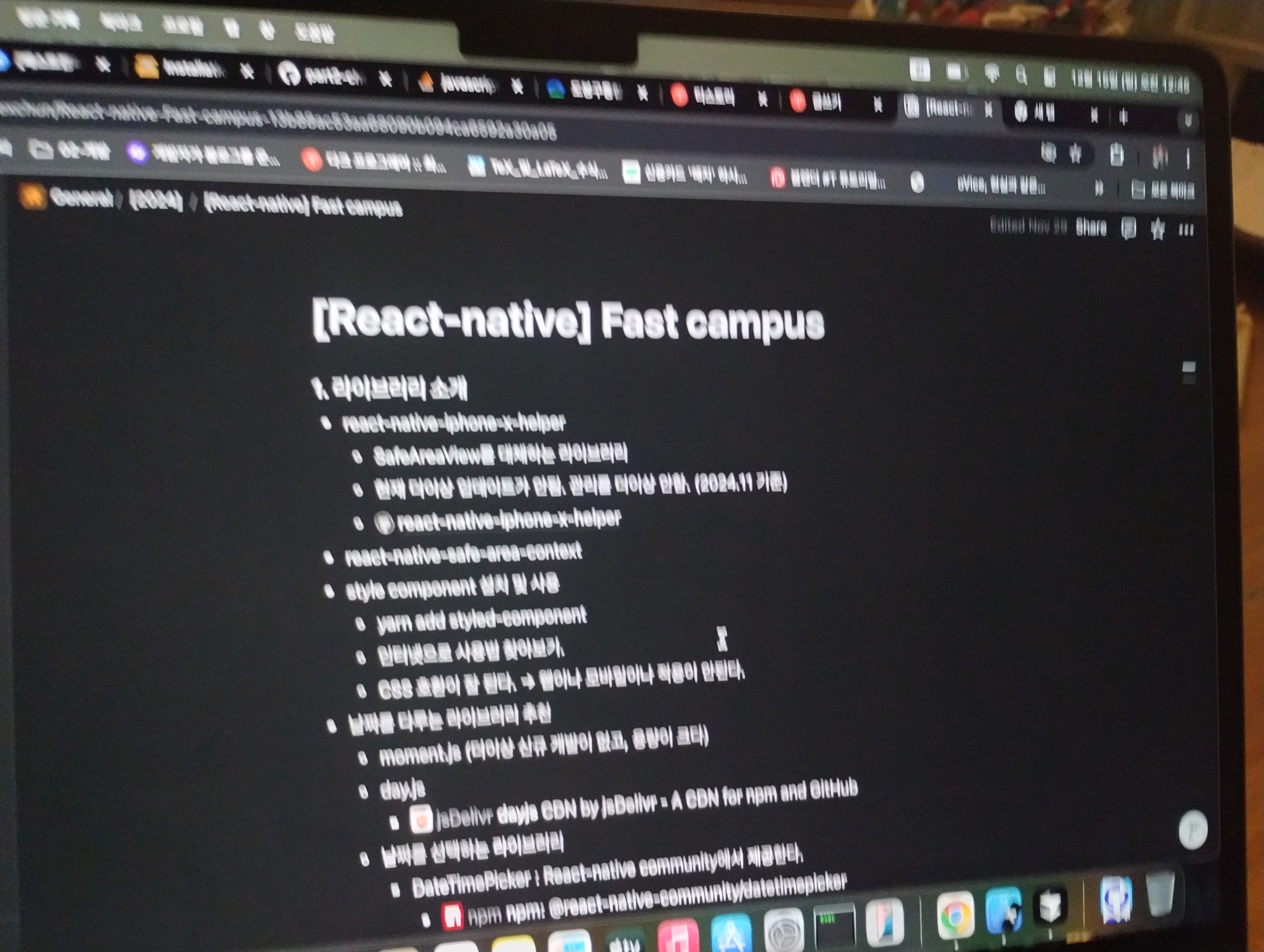 중간중간 처음 접하는 라이브러리나 내용들을 노션에 간략하게 정리하고 있다.